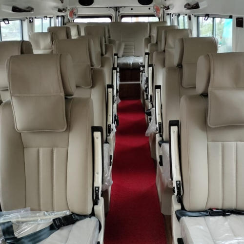 - Facility: Ac, Charging Point, 12 Pushback Seat + Sofa Bed, Music